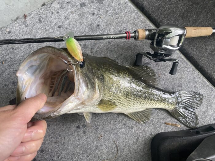 正直、朝にクランクベイトで釣れた魚だけでも十分に満足でした。そのうえ、モンスタークラスのおまけが付いてくるとは、ツイている日はこんなものなのかもしれません。