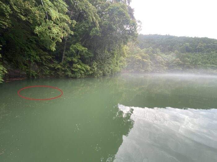 バックウォーター付近は流れが速すぎるので、少し手前のベンドから釣り始めます。七色ダムにしては珍しく濁っているので、これは逆にチャンスな予感がします。